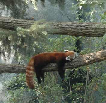 Awww.. =] The red panda looks so cute and funny sleeping like that. hahah