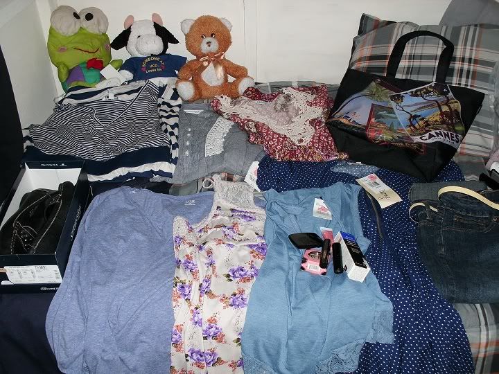 Came back from the mall on Monday and took my first "haul" picture just to show Phuc what I bought, but whatevs I went through all that effort to line up everything on my bed so MIGHT AS WELL: